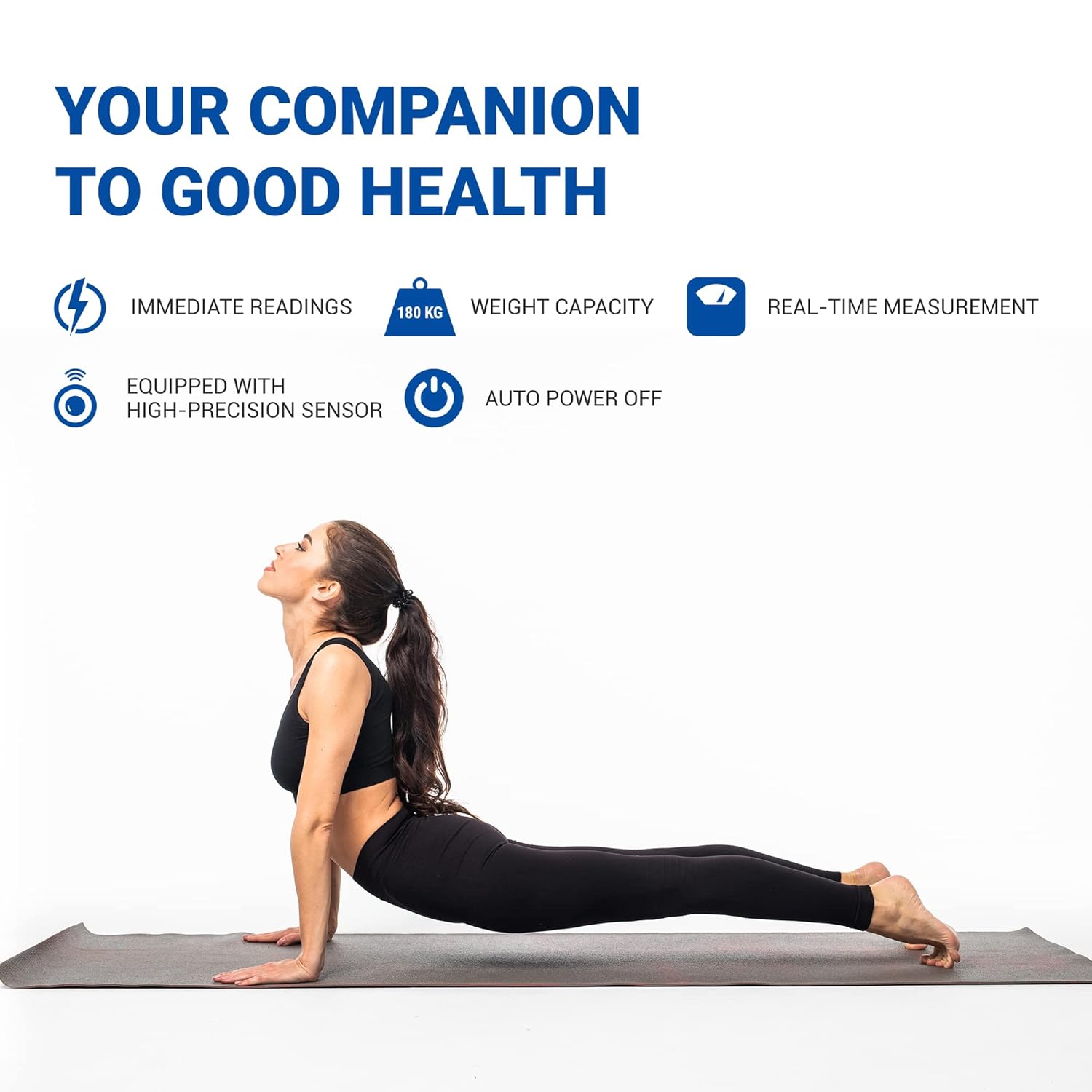 - · HASSLE FREE: The extra-large 3.6” bright LED display is a breeze to read, shows the weight in KGs & Room temperature, and the scale turns on and off on its own: use it in seconds and move on with your day.