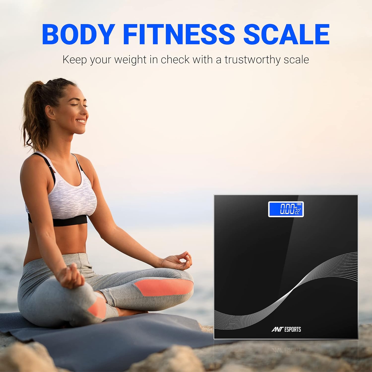 - · STRONG QUALITY DESIGN: The Ant Esports Flora Wave digital bathroom scale has a sturdy and durable 12.3”x12.3” premium tempered glass platform with rounded corners. It can measure up to 180kg.
