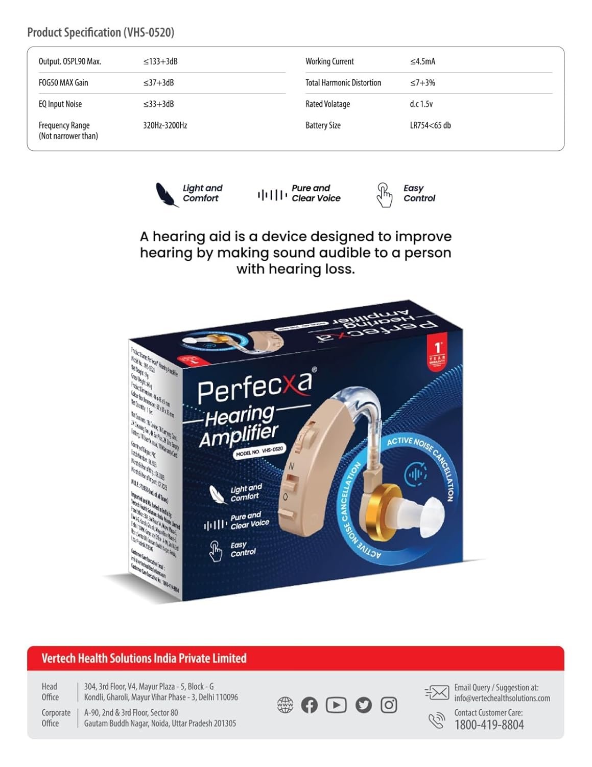 Perfecxa Hearing Amplifier Listening Device Personal Amplifier for Seniors and Adults (VHS-0520)